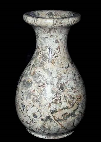 |  | Hand Carved Fossil Coral Stone Vase - 4 x 8 Inch Tall