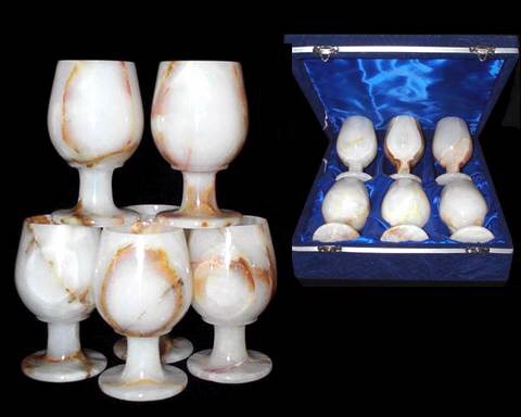 |  | White Onyx Glasses with Gift Case - Set of 6, 3x5"H Out of Stock